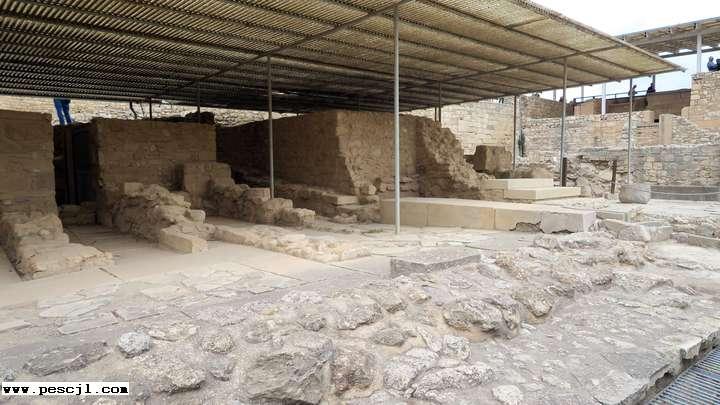 Islas griegas.: Creta. Palacio de Cnosos: alrededores del piso inferior del edificio