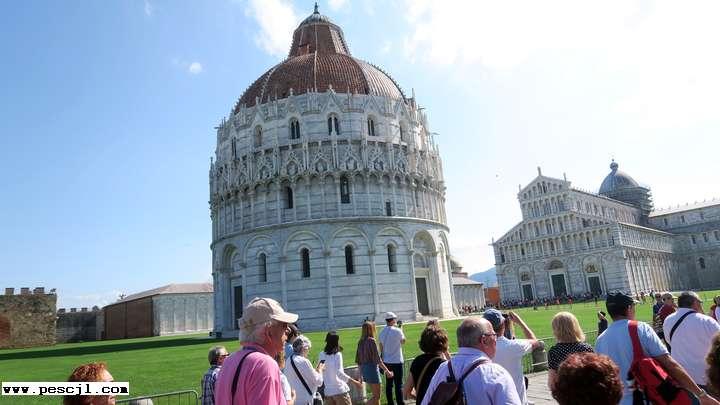 Pisa.: Entrada a la plaza de la catedral, por el baptisterio