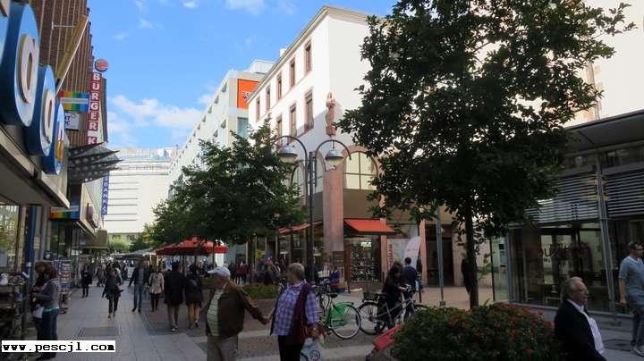 Frncfort.: Calle peatonal hacia la calle Zell (milla de oro) y la iglesia de Liebfrauenkirche (gtica)