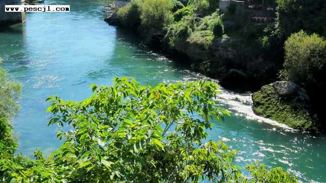 Mostar: el ro Neretva desde e exterior de la mezquita