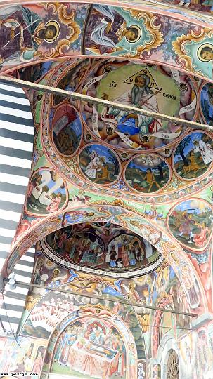 Monasterio de Rila.: Por el atrio, a la izquierda de la fachada principal del templo