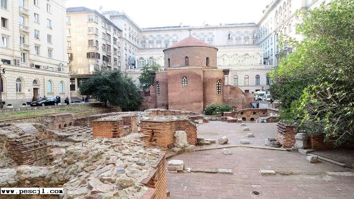 Sofia.: Entorno de la Iglesia de Sveti Georgi. Ruinas romanas