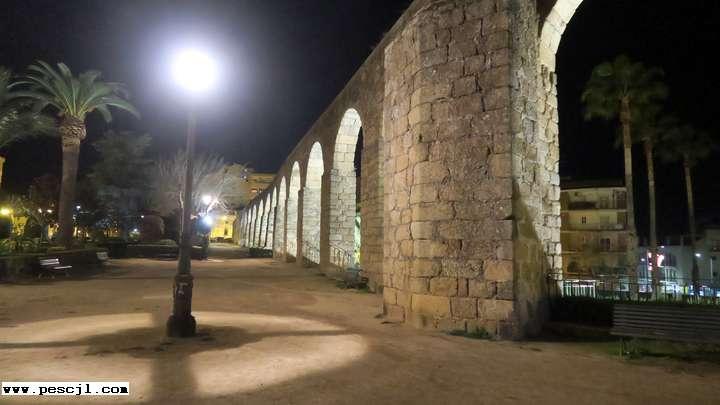 Plasencia.: el acueducto arabe por la noche
