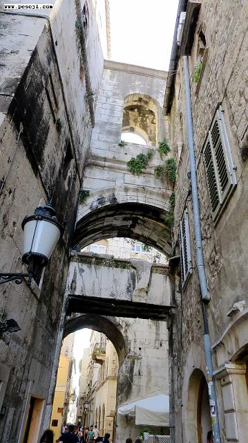 Split: Palacio de diocleciano diurno Detalles de la puerta oeste y su entorno