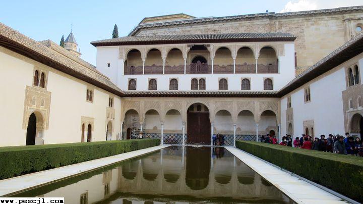 La Alambra.: Los palacios nazaries. El palacio de colmares Entrda al patio de los Arrayanes