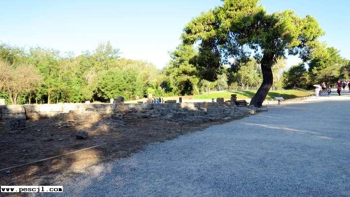 Olimpia: Parque arqueolgico. Bordeando la palestra hacia el Filipeo