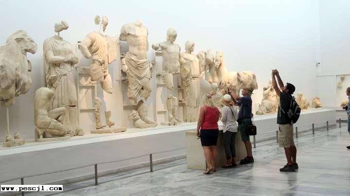 Olimpia: Parque arqueolgico. Entrando al museo por la sala de los frontones del Templo de Zeus,