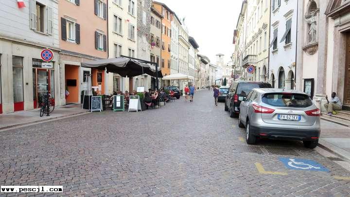 Trento.: Por el casco histrico. Fin de la Via Rodolfo Belenzan en la plaza del Duomo