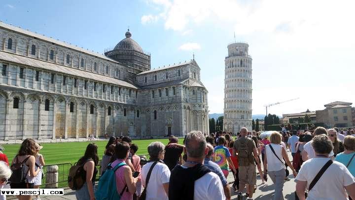 Pisa.: Plaza de la catedral, general con vistas a la catedral y la torre