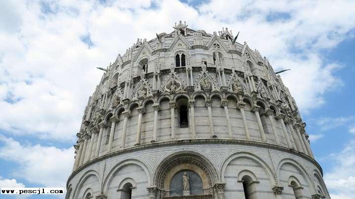 Pisa.: Plaza de la catedral. Exteriores del baptisterio