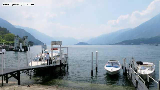 lago de como: bellagio: muelle embarque hacia como