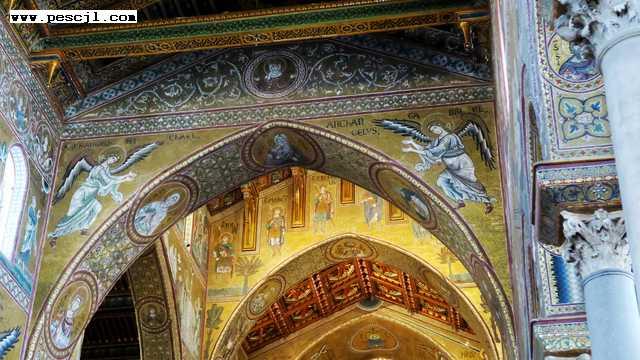 Sicilia: Monreale. Interior. Zona media. Detalle de las alturas