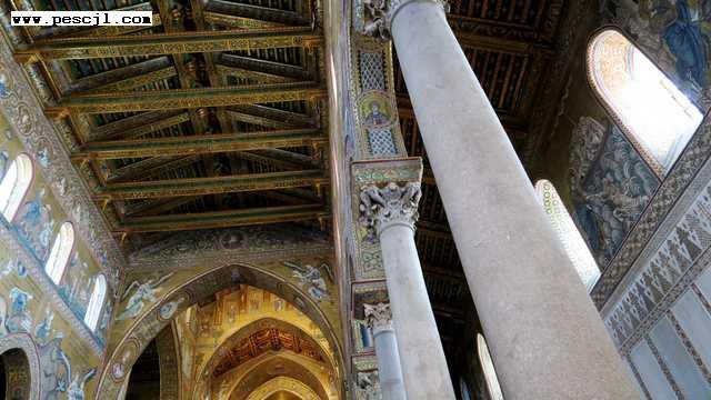 Sicilia: Monreale. Interior. Zona media. Detalle de las alturas