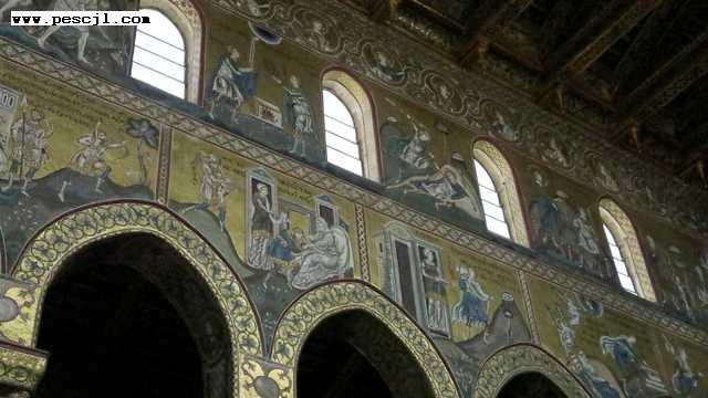 Sicilia: Monreale. Interior. Zona media. Detalle de las alturas