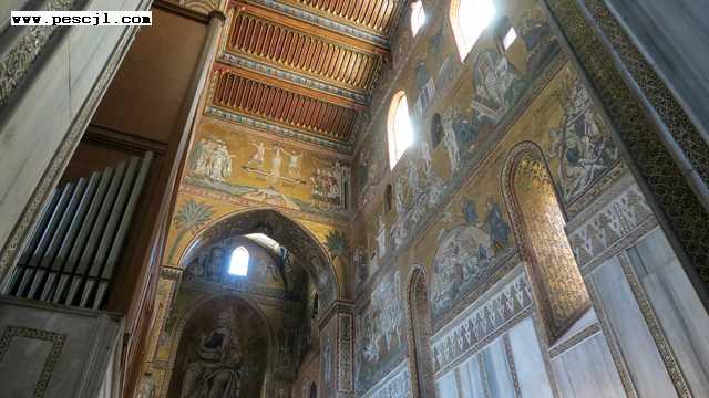 Sicilia: Monreale. Interior. Finalizando la visita. Del altar mayor a la puerta de entrada
