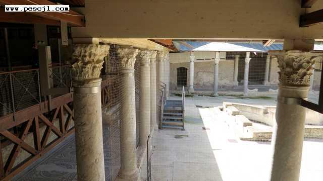 Sicilia: La villa romana de Casale: Por el peristilo, zona de los mosaicos con escenas de caza
