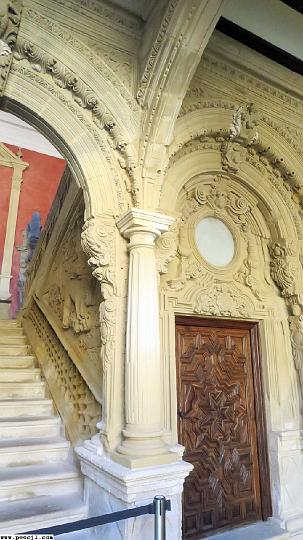 Baeza.: Palacio de Jabalquinto. Escalera monumental de subida al segundo piso