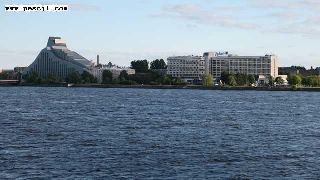 Riga:: El Daugava: Zona del puente Vansu (mas de 500 m) Mirando al casco historico