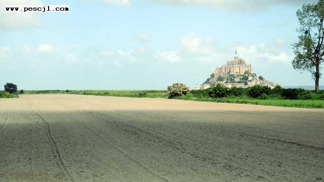 Normandia: Abadia de Saint Michel Acercandonos por la carretera