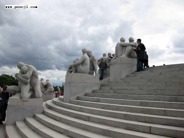 oslo: parque frogner: vigeland sector de esculturas del monolito (con el obelisco)