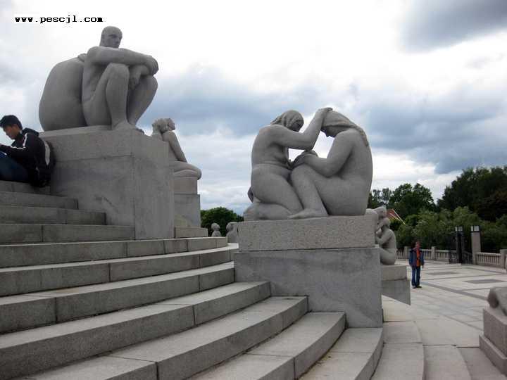 oslo: parque frogner: vigeland sector de esculturas del monolito (con el obelisco)
