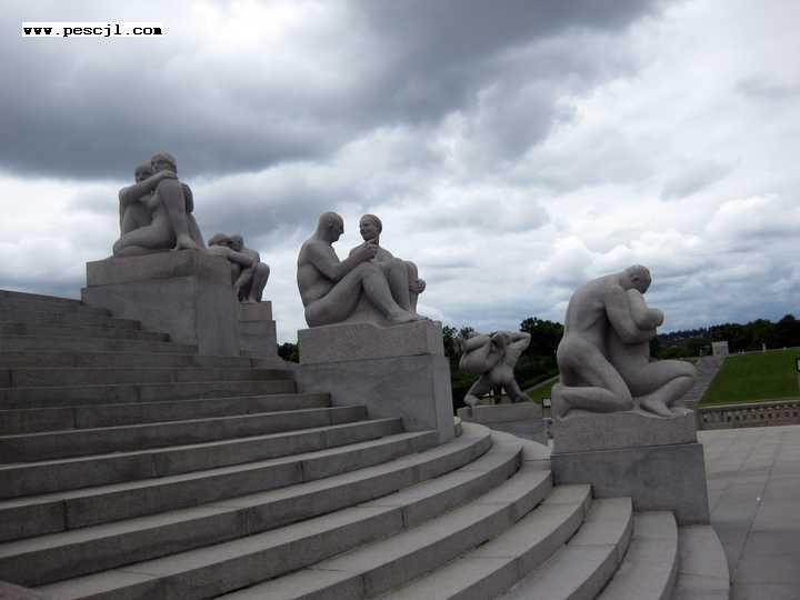 oslo: parque frogner: vigeland sector de esculturas del monolito (con el obelisco)