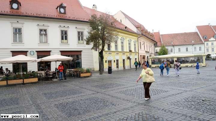 sibiu.: La Plaza Grande y la portada de la catedral católica