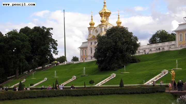 san petersburgo: palacio de peterhof jardines y fuentes en el entorno del palcio principal