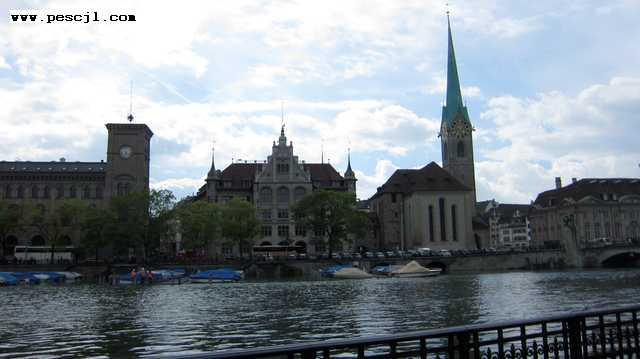 zurich: Casco histrico: Orilla izquierda del ro Limmat Hacia el ayuntamiento