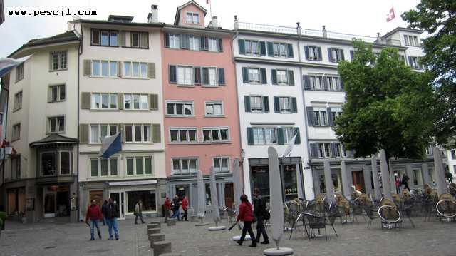 zurich: Casco histrico: Orilla izquierda del ro Limmat Hacia el ayuntamiento